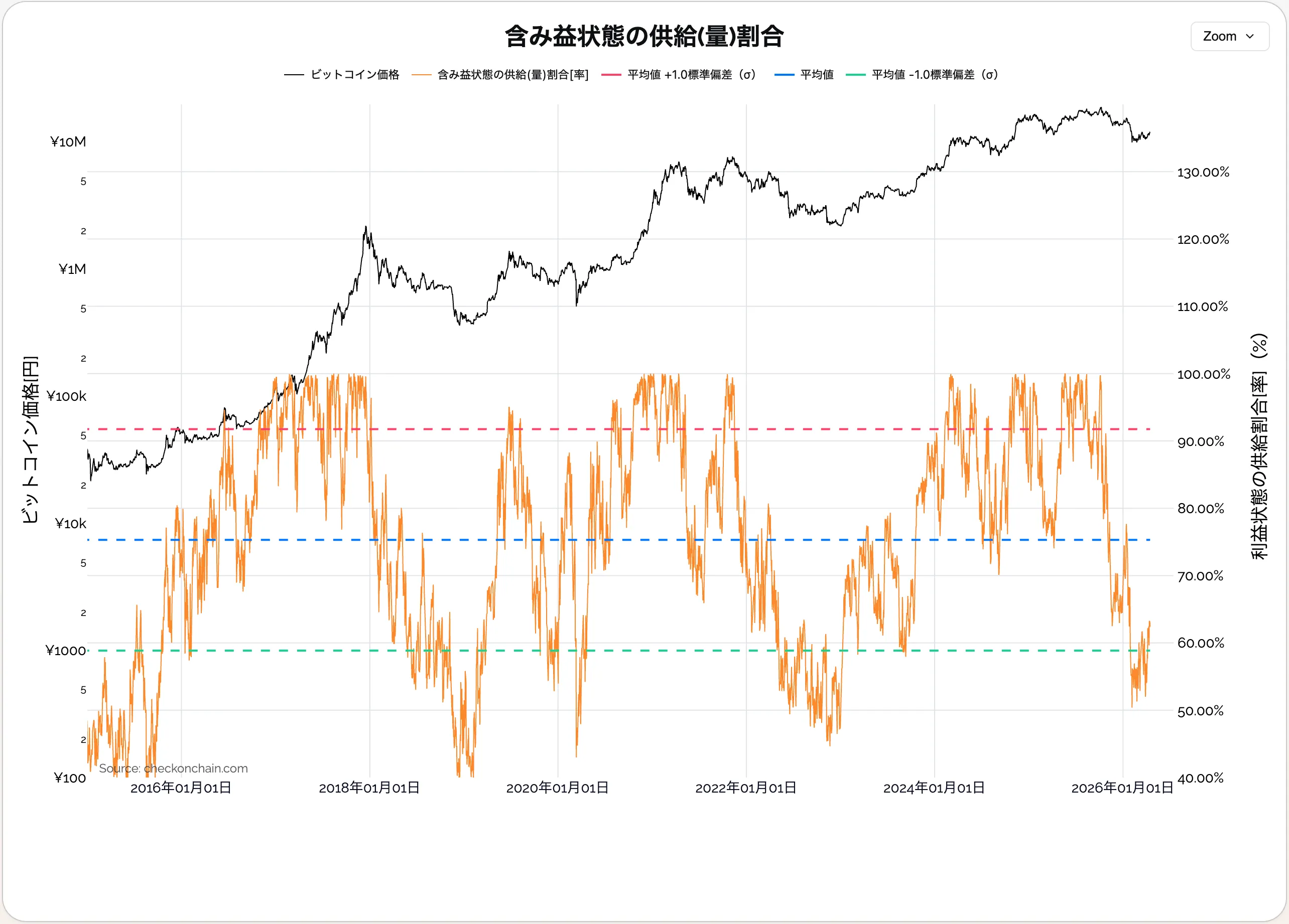 「含み益状態の供給量」は、市場に溢れる期待や恐怖を一旦脇に置き、「投資家たちの真の収益状況」という動かしようのない事実を教えてくれます。
