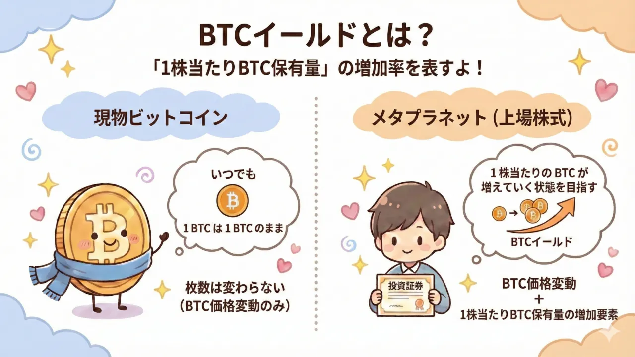✨ まとめ: BTCイールドは「1株当たりBTC保有量(持ち分の尺度)」に注目する考え方