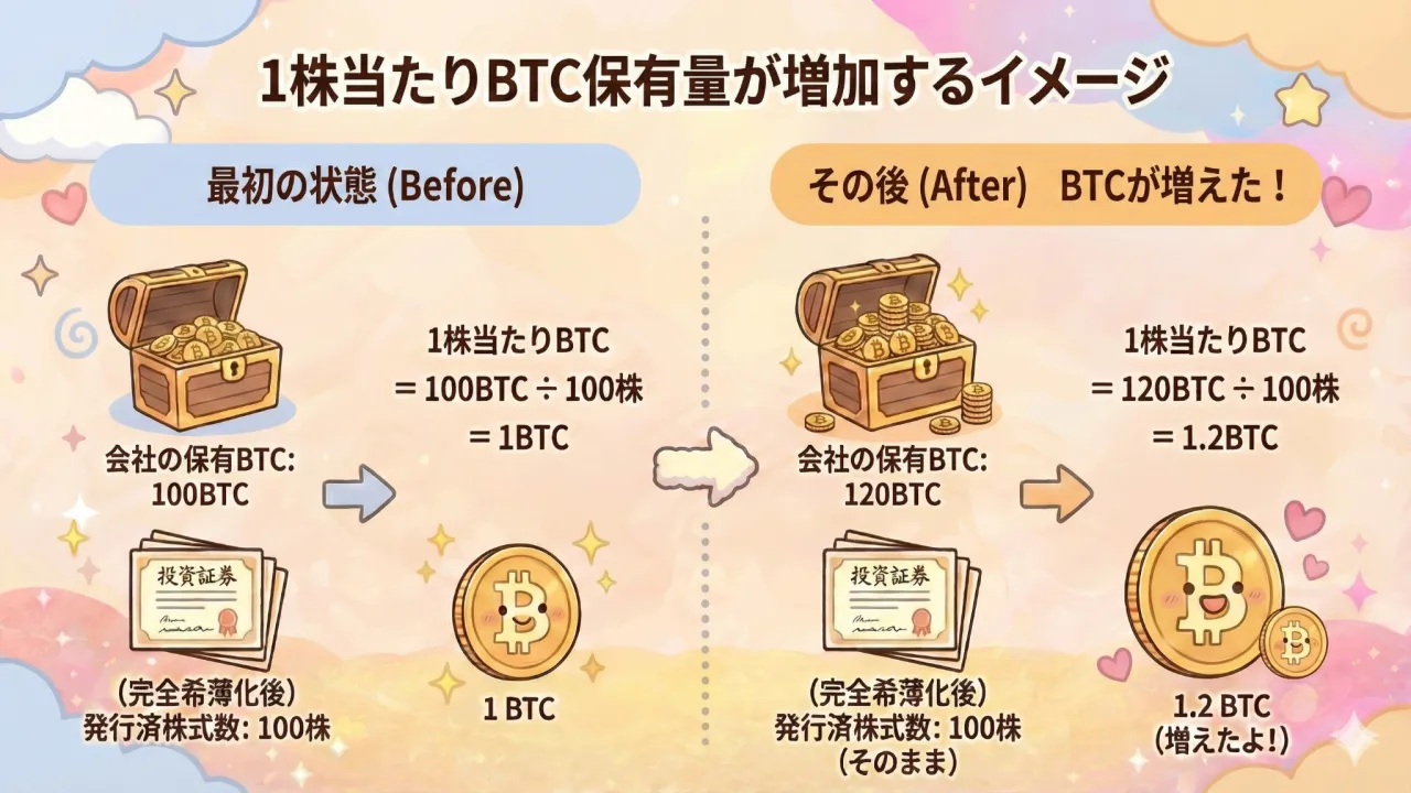 1株当たりのBTC保有量が増えるという考え方をやさしく解説!」